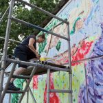 Ähnlich wie schon Andora im Vorjahr hatte auch Zoë MacTaggart bisweilen mit extremen Wetterwidrigkeiten zu kämpfen. Bei Temperaturen weit über 30 Grad wird jede Bewegung schnell zur Tortur, sodass die Arbeitszeiten gerade zu Beginn des DorfART-Projekt in den sehr frühen Morgen- und späten Abendstunden lagen.