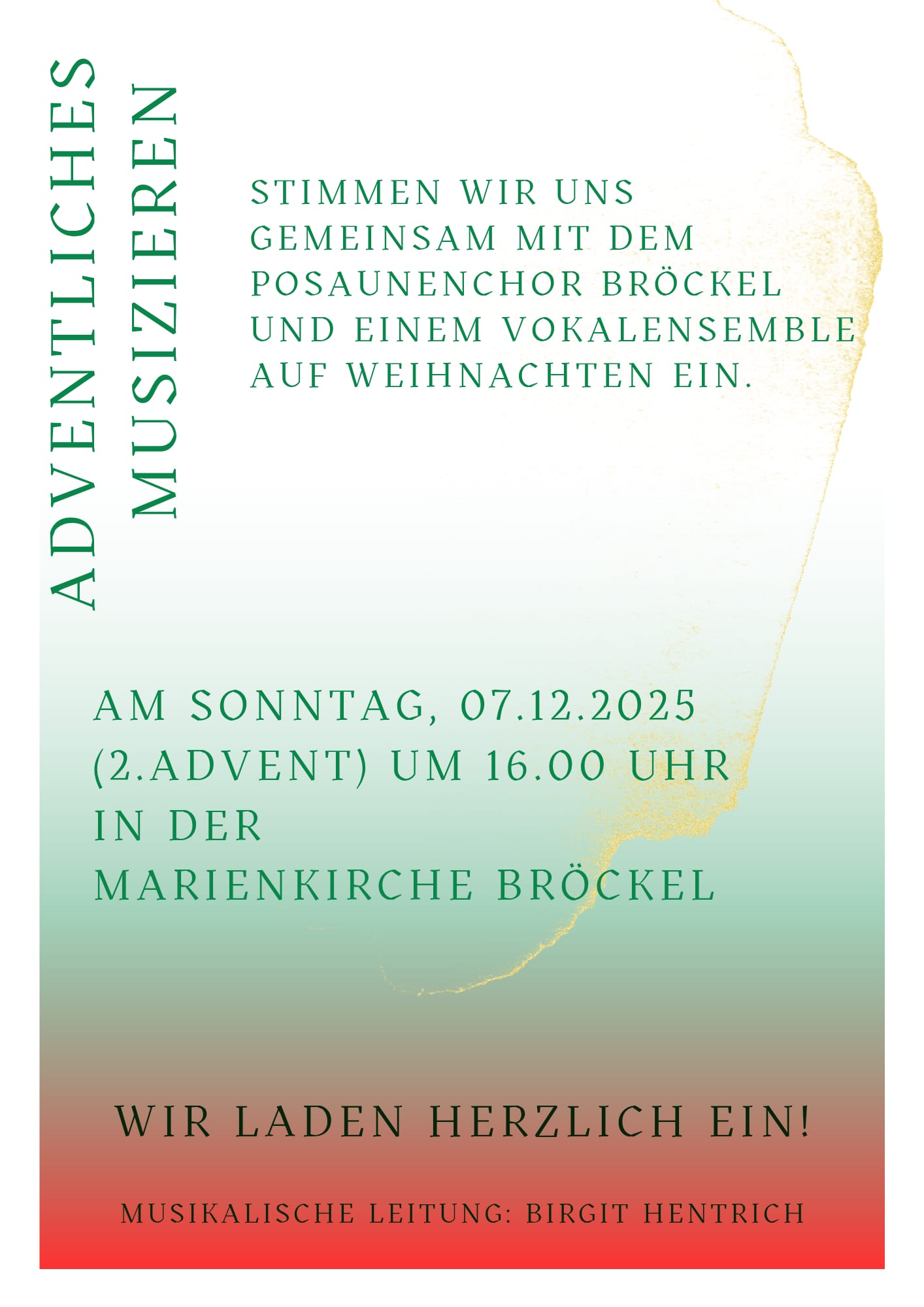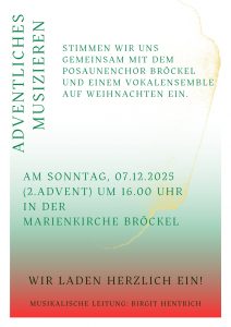 Adventliches Musizieren mit dem Posaunenchor Wann 7. Dezember 2025 16:00 Zum Kalender hinzufügen ICS herunterladen Google Kalender iCalendar Office 365 Outlook Live Wo Kirche Bröckel Hauptstr. 63, Bröckel, Niedersachsen, 29356 Karte nicht verfügbar
