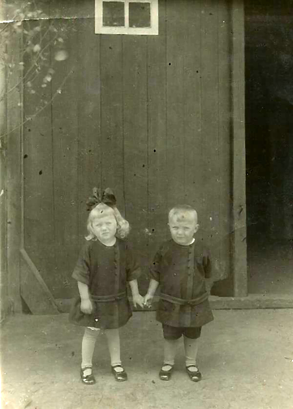 5_1920 er Jahre die Zwillinge Erna und Christian vor der Diele Veröffentlicht 13. Dezember 2023 am 600 × 838 in Hof 20 – Baukelborg Erna und Christian Hering 1920er Jahre